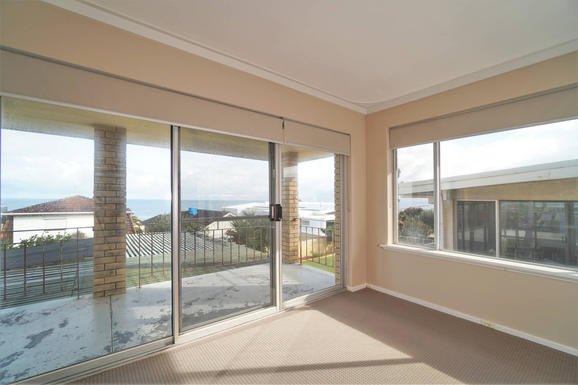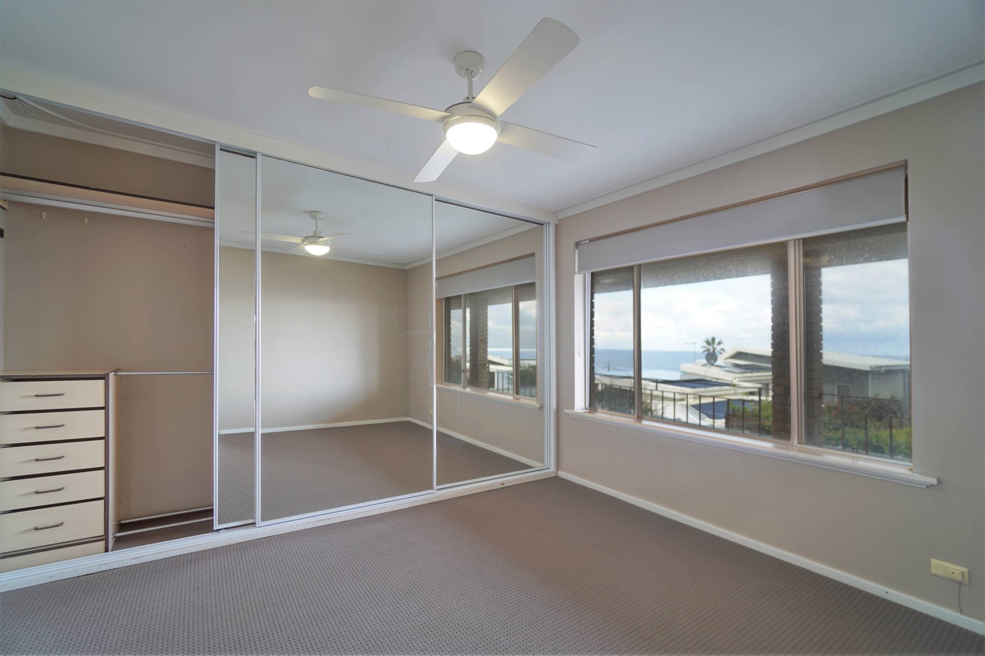 • Master bedroom with ocean views, large mirrored built in robe & ceiling fan