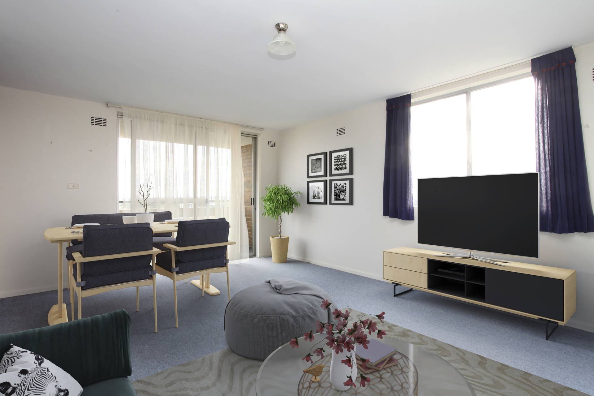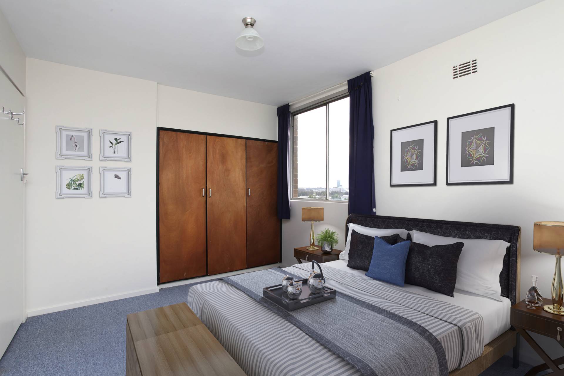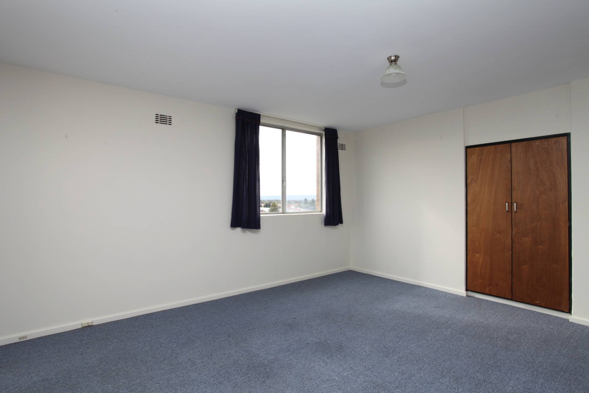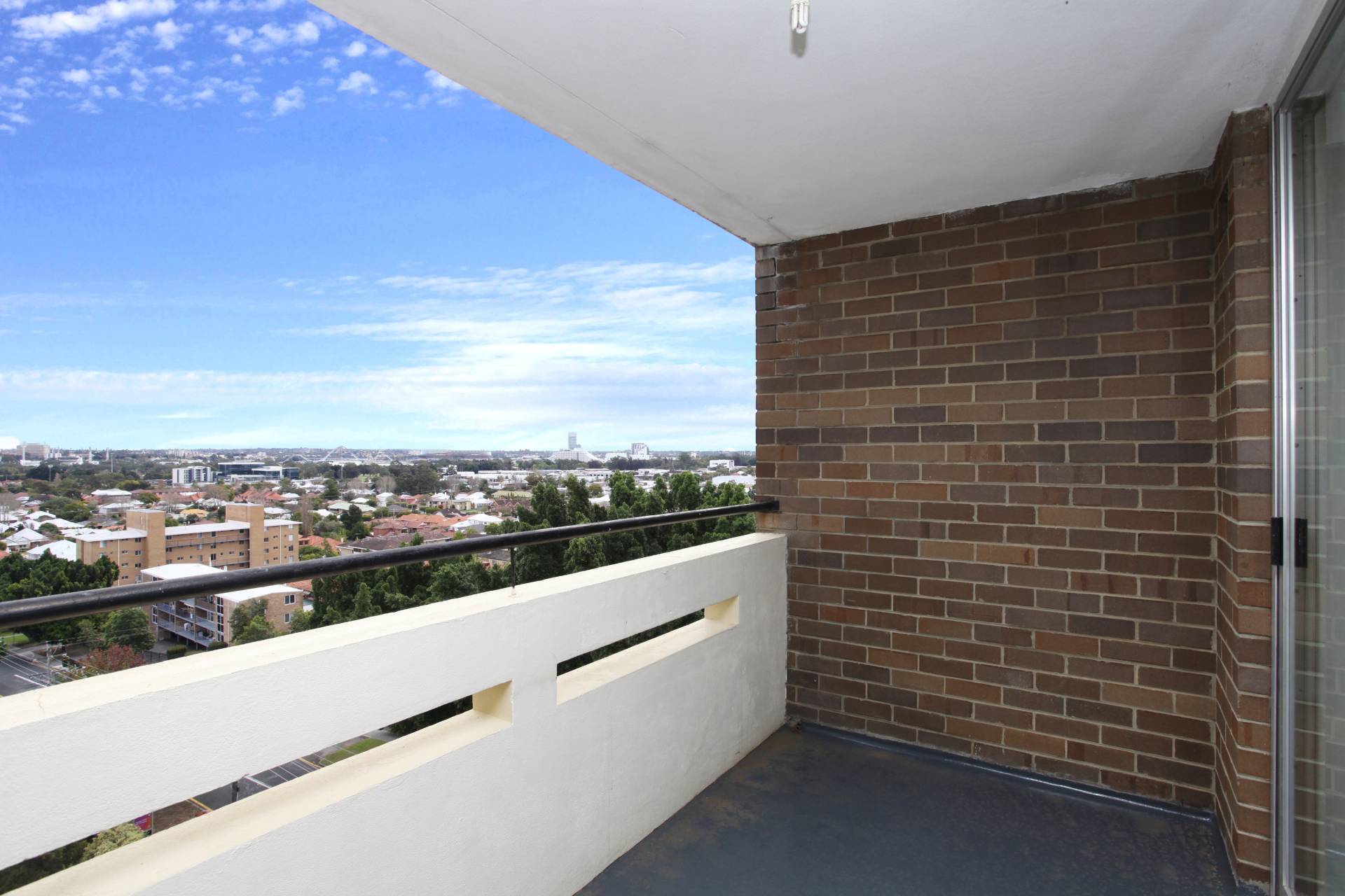 Internal bathroom/laundry, large master bedroom and large balcony looking North to the city.