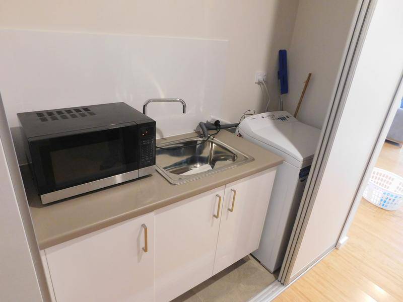 - Stainless steel fridge and dishwasher, microwave, washing machine and gas cooktop