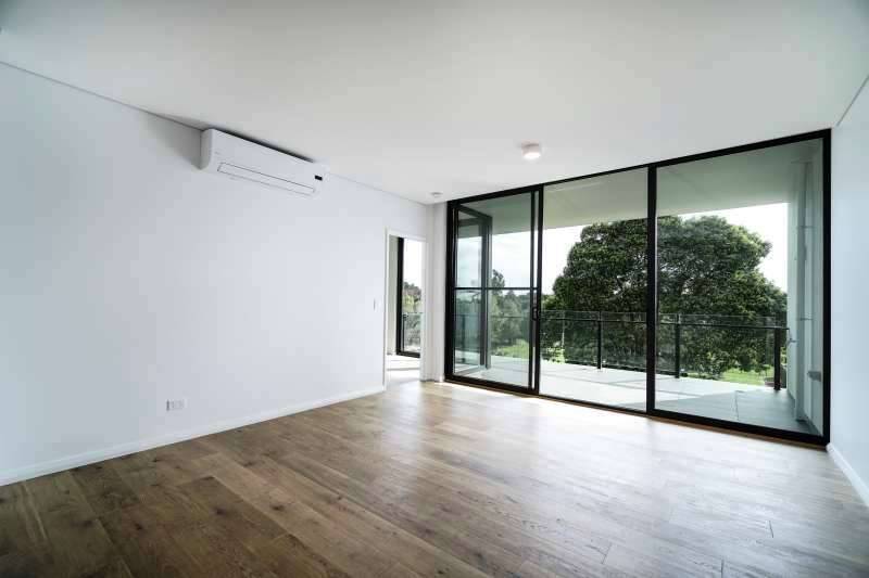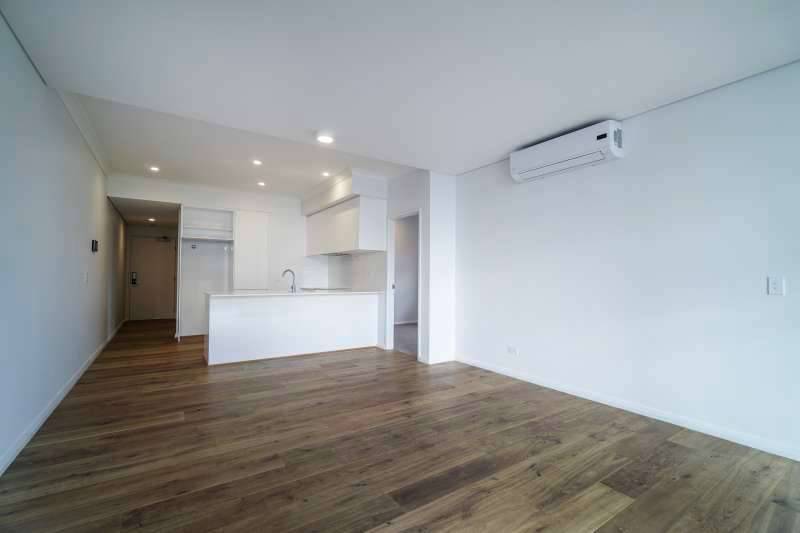 - An open plan kitchen living area with split system air conditioner