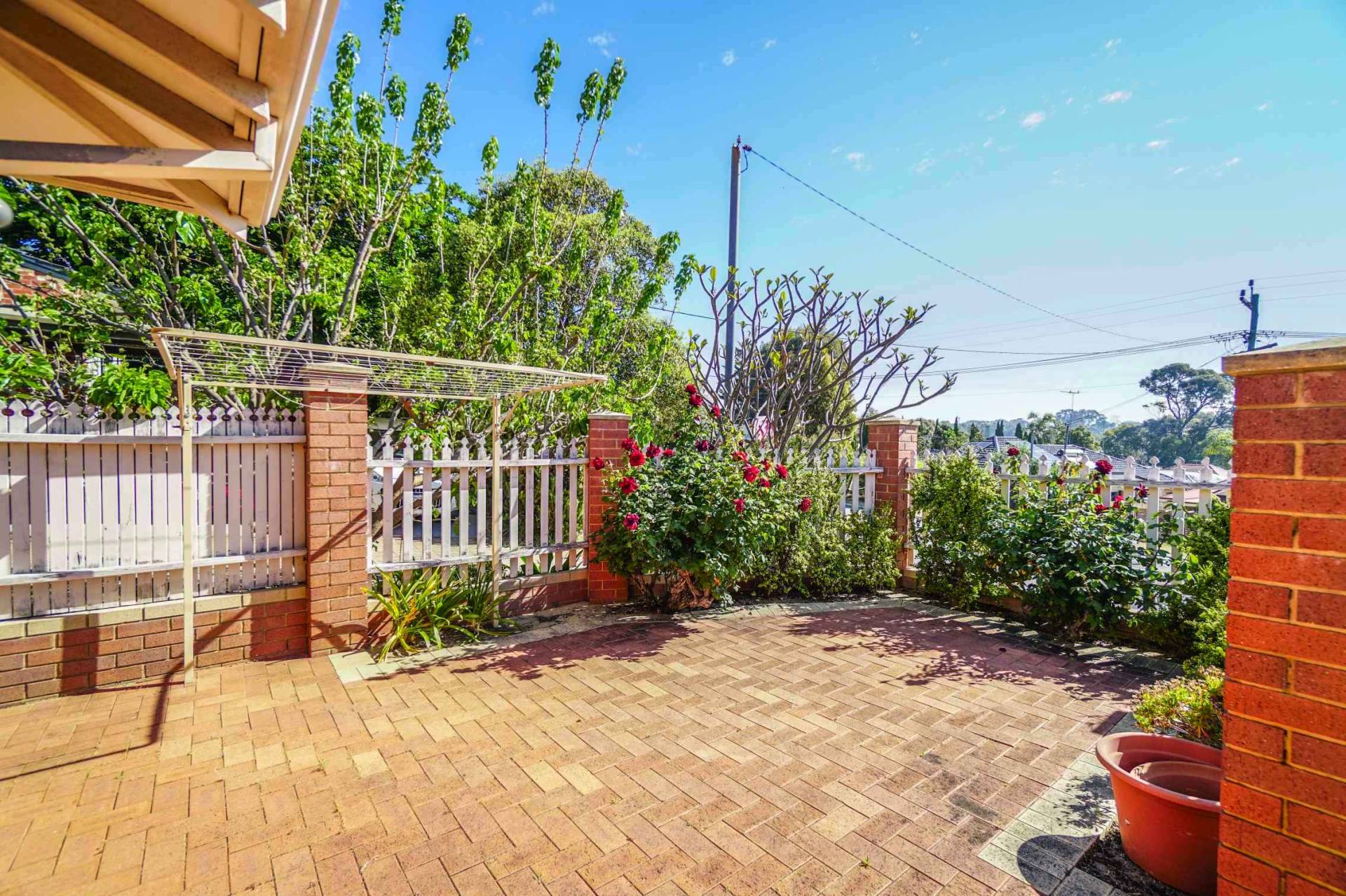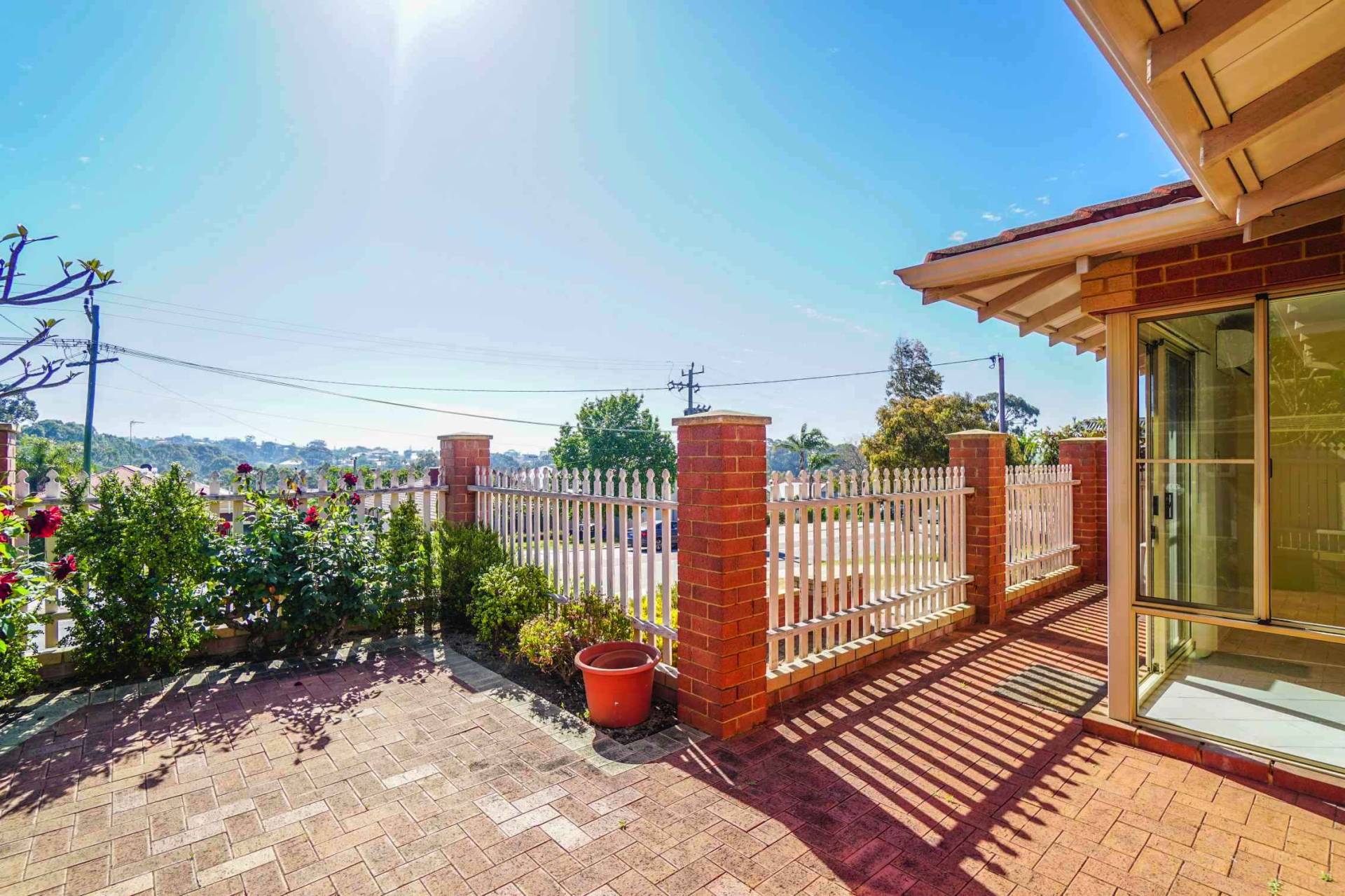 This one ticks all the boxes! Situated in an elevated position it is both private, and has a fantastic view over established gum trees. The west facing courtyard has open paved areas and easy care gardens, a beautiful place to enjoy the summer afternoons and evenings.