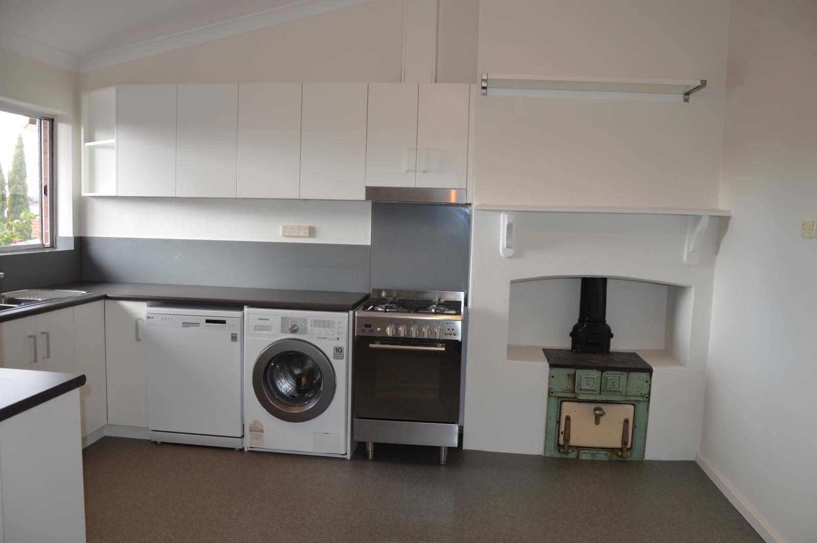 - Renovated kitchen with dishwasher and washing machine that hasn’t sacrificed the old wood fire stove