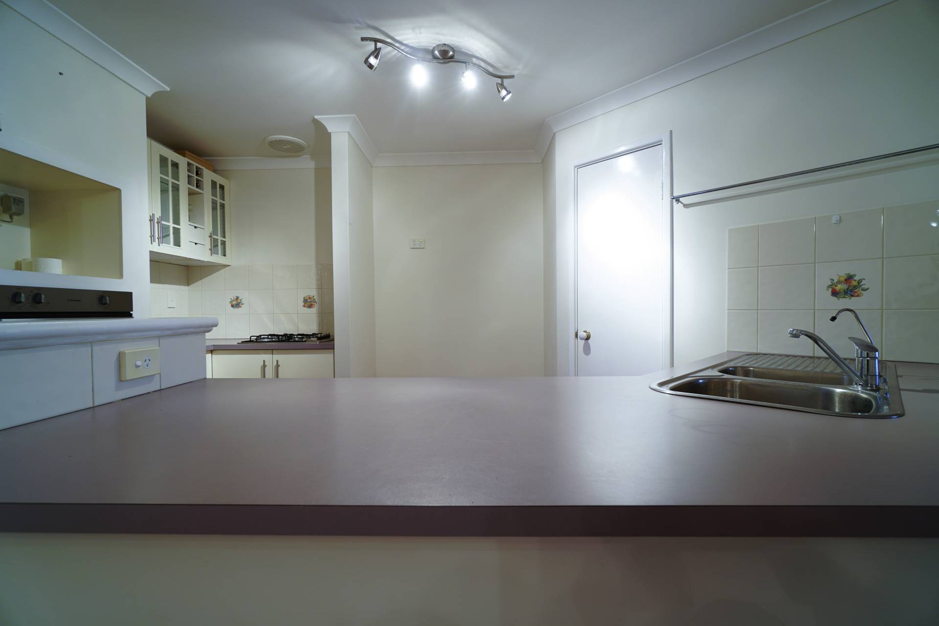 - The kitchen overlooks the meals living and outdoor area and has overhead cupboards and a dishwasher