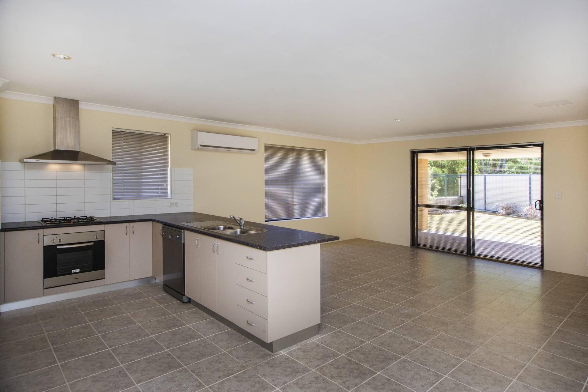 • open plan living/kitchen/meals area