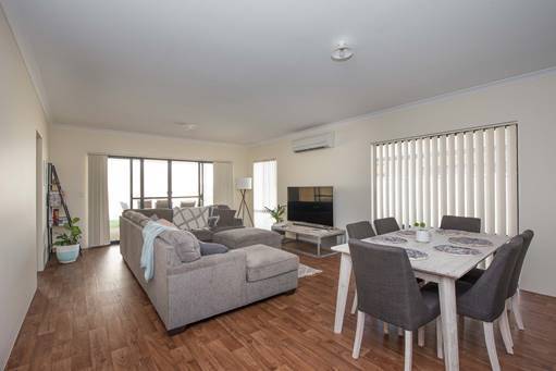 This 4 bedroom 2 bathroom family home is perfectly placed in a quiet family street. Peace and quiet yet situated close to shops, pubs and only a six minute drive to Wanneroo primary school.  Internally this home boasts a big formal lounge/theatre room and large open plan living area with huge split system air conditioner to heat/cool the whole area. There is neutral decor throughout to suit any style.