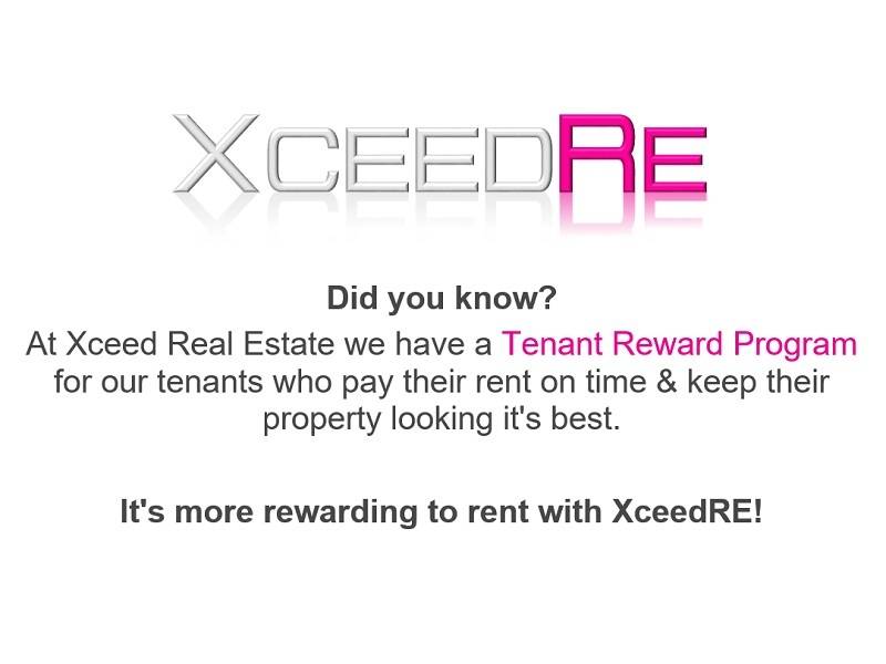 Tenant Reward Program: At Xceed Real Estate we have a Tenant Reward Program for our tenants who pay their rent on time & keep their property looking its best. It’s more rewarding to rent with XceedRE!