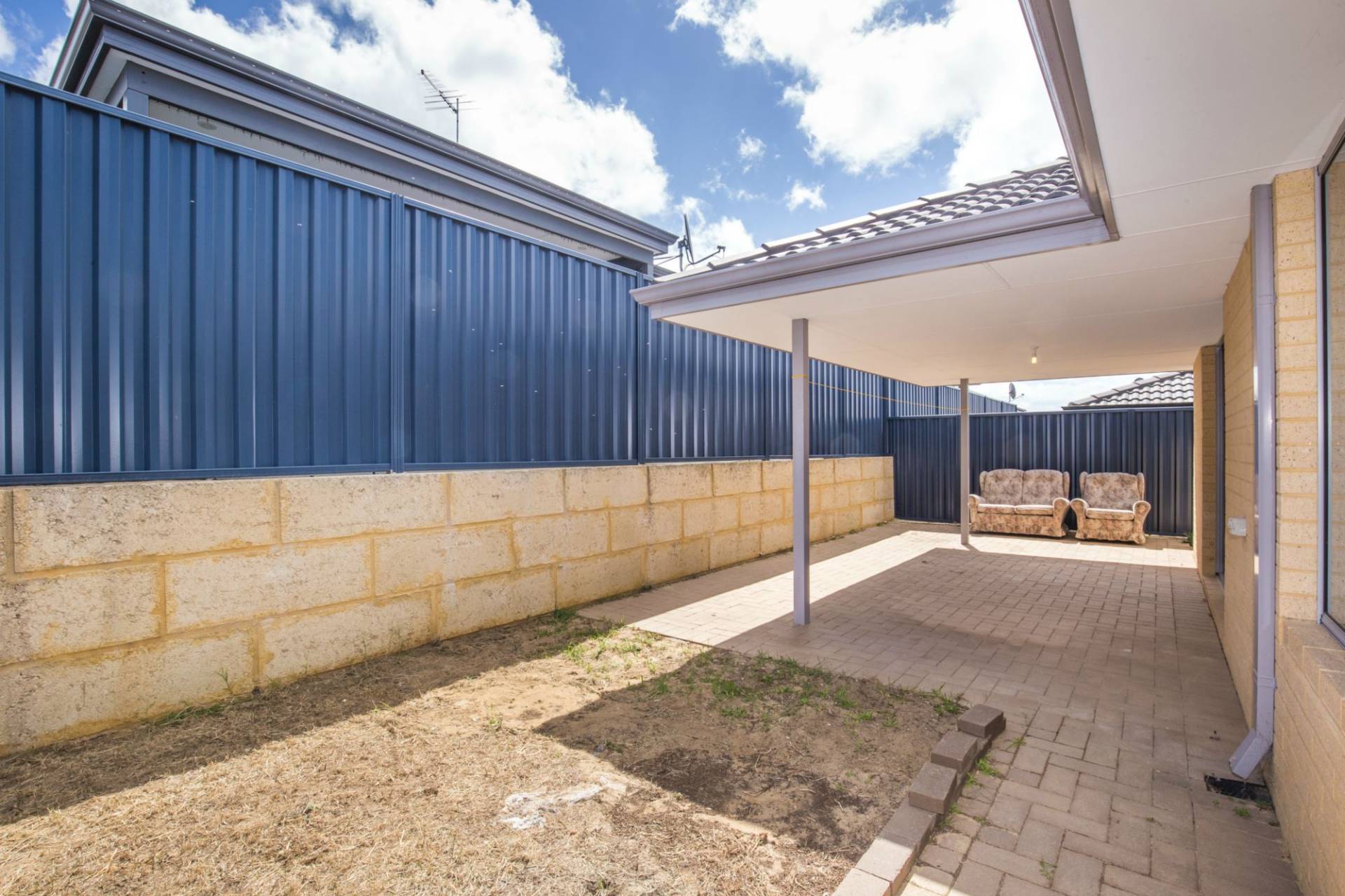- Rear patio area with grassed area.